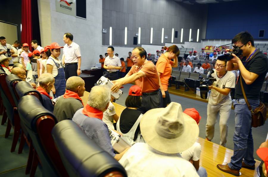 泰山網(wǎng)訊 (記者 類亞彤)為紀(jì)念抗日戰(zhàn)爭(zhēng)暨反法西斯戰(zhàn)爭(zhēng)勝利70周年,弘揚(yáng)抗戰(zhàn)精神,褒揚(yáng)抗戰(zhàn)老戰(zhàn)士,24日上午,由泰安市民政局主辦,泰安市邁迪醫(yī)療電子有限公司、小紅帽公益發(fā)展中心協(xié)辦,市委宣傳部、市衛(wèi)計(jì)委支持的“泰安邁迪公司‘銘記歷史·關(guān)愛(ài)老兵’”捐贈(zèng)活動(dòng)舉行。